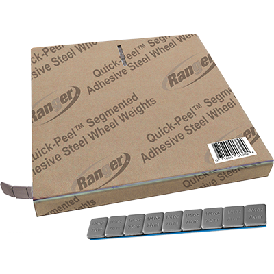 Ranger now offers our popular Quick-Peel™ adhesive tape weights in bulk rolls. They're packaged in self-dispensing cartons, featuring a Free-Glide™ centre hub and nylon feeder mouth for smooth, jam-free delivery. Ranger wheel weight spools deliver the exact weight you need without waste. An easy-to-remove Quick-Peel™ adhesive liner minimises unproductive fumbling and readies weights for quick mounting in fractions of a second. Available in silver, black or combo rolls, Ranger wheel weights are a shop favourite. They're easy to install, hold better and are environmentally friendly.